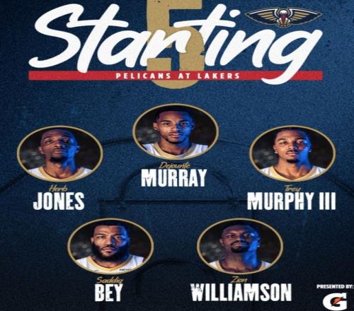 鹈鹕,锡安24分4板、墨菲21分8板4助2断、贝18分5板3助2断、穆雷15分8板8助、小乔丹6分6板2助、麦戈文斯6分1板1助、费尔斯5分2助、琼斯2分6板5助4断、奎因2分2板4助、米西2分1板;