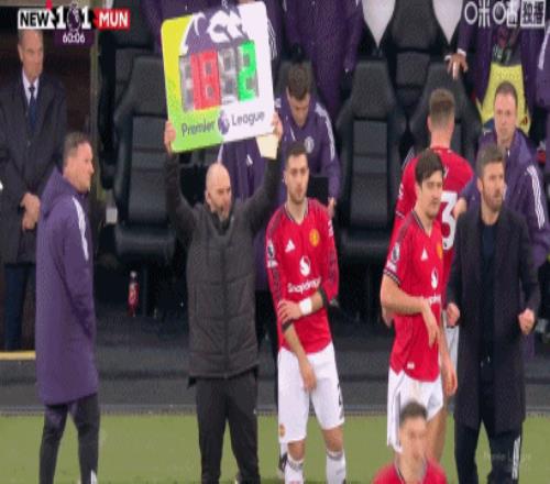 第45+9分钟,B费定位球助攻,卡塞米罗抢点头槌破门,曼联1-1!