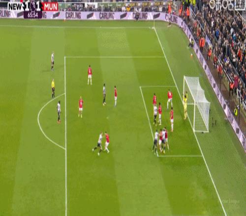第65分钟,安东尼-戈登角球进攻中跑出空当打门,皮球偏出立柱