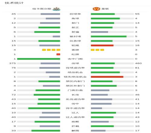 第45+1分钟,雅各布-拉姆齐假摔吃到第二张黄牌被罚下,纽卡少一人作战