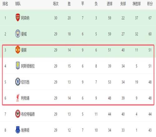 本赛季,英超9队出战欧战,结果都杀进16强,因此英超很可能再次拿到5个欧冠名额。不过尽管如此,欧冠席位的竞争依然激烈,曼联虽然目前排名前三,但是他们也不敢保证,赛季结束后肯定能获得欧冠资格。