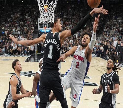 首节开打,文班亚马、福克斯率先在进攻端发力,两人都实现了内外开火。奥萨尔伤退,马刺多点开花,得以不断扩大分差。活塞远投手感冰凉,只能在坎宁安的带领之下,不断冲击篮下追分。