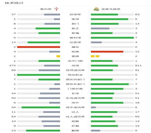 北京时间3月7日西班牙足球甲级联赛 联赛 第27轮,塞尔塔主场对阵皇家马德里。上半场,居莱尔助攻,楚阿梅尼破门。斯韦德贝里传球,博尔哈扳平比分。下半场补时阶段,巴尔韦德完成绝杀。全场比赛结束,皇马2-1击败塞尔塔。