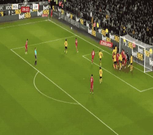 第53分钟,罗伯逊的传球正好越过狼队的防线,萨拉赫包抄破门,裁判第一时间十一越位在先,VAR介入,进球有效,萨拉赫连续两场比赛破门得分。