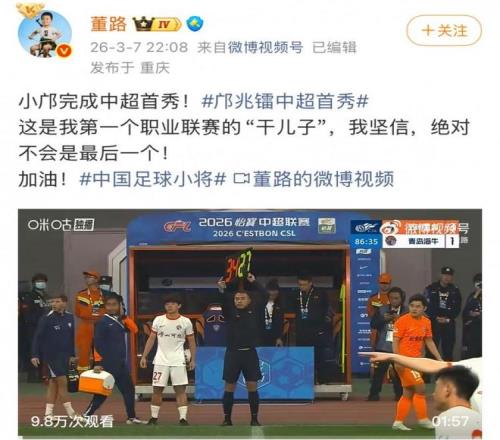 赛后,“足球小将”创始人董路在社媒晒出他登场的瞬间,一句“这是我第一个职业联赛的‘干儿子’,我坚信,绝对不会是最后一个”,满是期许与底气。16岁就站上中超赛场,被董路寄予厚望的邝兆镭,未来的职业规划该如何布局?