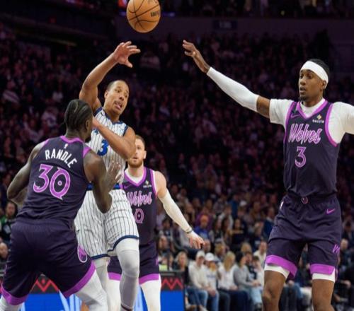 易边再战,班凯罗扣篮得手,兰德尔强打止血,爱德华兹三分命中,魔术则继续拿分,森林狼随后进攻未能延续,魔术则不断拿分,霍华德三分命中取得81-61领先,随后爱德华兹三分命中,带队打出9-0缩小分差,卡特三分命中稳住,最后兰德尔压哨补篮,三节打完森林狼78-90落后。