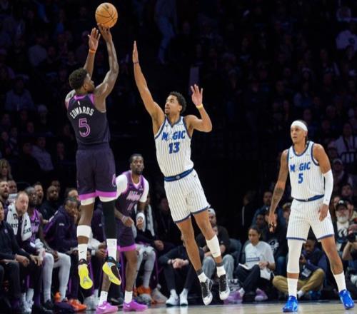 末节比赛,魔术连续造杀伤走上罚球线,萨格斯三分命中,打出10-2攻势重新取得20分领先,戈贝尔内线打进止血,贝恩突破继续拿分,爱德华兹连续罚球追分,班凯罗自投自抢打进,森林狼无力缩小分差,最后4分多钟换下主力球员缴械投降。最终,魔术119-92客场大胜森林狼,取得3连胜。