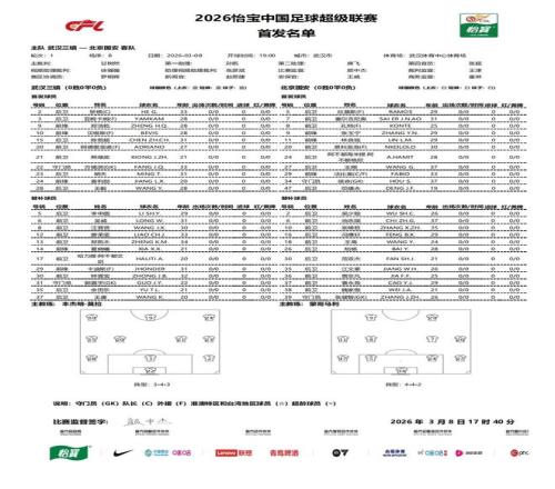 北京时间3月8日19:00,中超第1轮继续进行,北京国安做客武汉体育中心体育场挑战武汉三镇,本场主裁判为甘树然,VAR裁判为徐强强,赛前双方首发出炉。