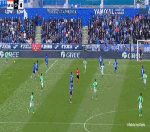 第45+1分钟,阿布卡尔助攻,萨特里亚诺吊射破门,赫塔费2-0贝蒂斯