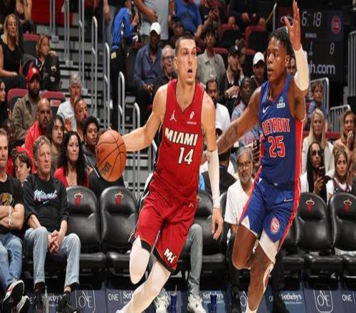 北京时间3月9日,NBA常规赛再战一场,热火首节打出34-16,最终主场121-110力克活塞迎来5连胜。此役希罗25分6篮板3助攻,阿德巴约24分9篮板6助攻,雅克19分5篮板7助攻,韦尔12分5篮板;活塞队4连败,坎宁安26分10助攻,杜伦24分5篮板,斯图尔特14分6篮板,里德10分4篮板。(NBA官网)