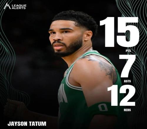 在开局连续投丢的情况下,塔图姆用一记补扣和一记三分打开局面,最终全场16中6,三分8中3,拿下15分12篮板7助攻的全能表现。