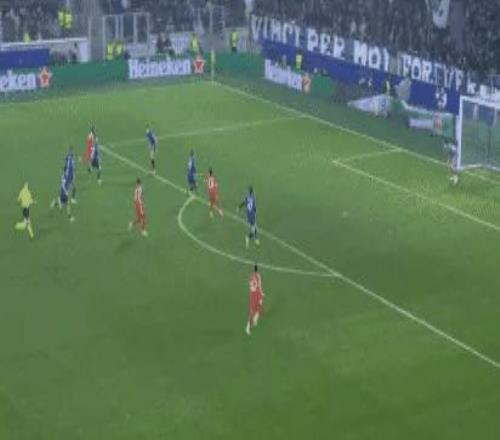 比赛开始后,拜仁就火力全开,猛冲猛打,亚特兰大后防线压力过大。他们本场比赛使用双前锋,但是意义不大。