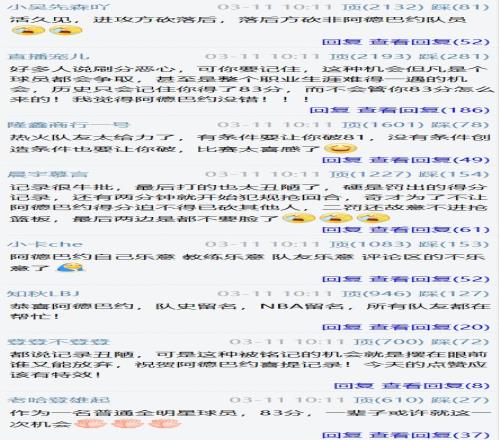 最终,阿德巴约砍下83分9篮板3助攻2抢断2盖帽,单场43罚(36中)打破科比的历史纪录。