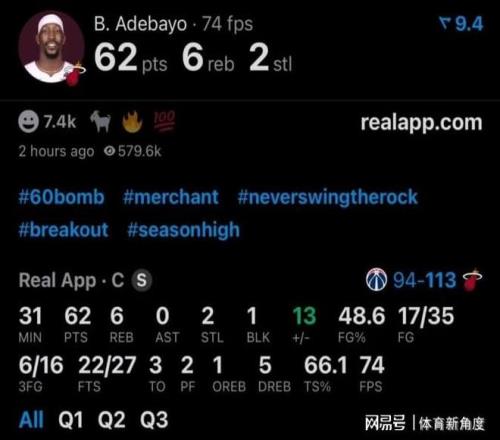 那最后的5分多钟,比赛的氛围已完全变了样,不再是垃圾时间的闲庭信步,而是阿德巴约与奇才队之间的一场个人荣誉与团队尊严的较量。奇才队的防守密不透风,真正的包夹战术让阿德巴约每一步都举步维艰。而热火队则巧妙运用犯规战术,试图为阿德巴约争取更多的进攻机会。毕竟,当比赛还剩1分40秒,热火还落后2分,而阿德巴约距离81分仅差2分时,每一秒都显得尤为珍贵。