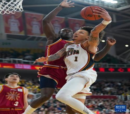 3月11日,吉林长白山恩都里队球员摩尔在比赛中上篮。新华社记者 杨晨光 摄