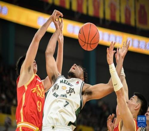 3月11日,南京天之蓝队球员汉兹(中)在比赛中突破。新华社记者 江汉 摄