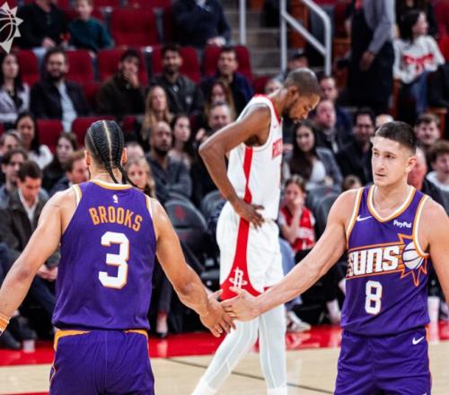 哪有什么老大,阿伦都能在湖人头上拿到28分,在活塞头上拿到33分,极致的团队主义,谁手感好,谁就拥有带队争胜的无限开火权。面对弱队基本不犯错!更关键的是,太阳最近7场比赛,赢下其中6场,包括击溃湖人,在布鲁克斯被捕后,布克和杰伦格林双核终于慢慢走上正轨:杰伦格林最近四战场均27.5分,布克最近四战场均33分,火箭球迷应该知道杰伦格林到3月份会有多疯狂。那按照这个趋势,太阳追森林狼+掘金+火箭,可能就2-3场比赛,万一把火箭反超了呢?杜兰特该有多尴尬?离开自己的球队起飞,自己加盟的球队越打越难看。