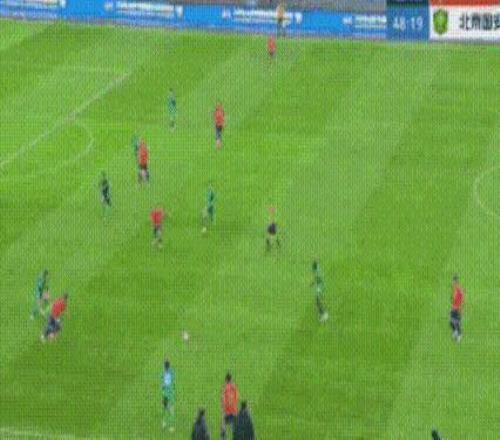 比赛来到下半场,泰山队立刻换人调整:彭啸出战换下高准翼。第49分钟,泰山队进球了:国安的后防线已经基本就位,但是泰山队球员三传两导将球给到右路的谢文能,后者劲射破门!