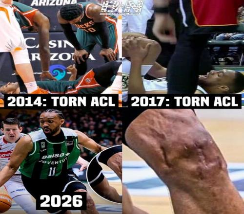 2014-15赛季,第一次左膝前交叉韧带撕裂。2016-17赛季,同一位置,再次撕裂。