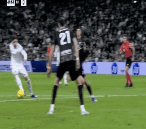 第44分钟,弗兰·加西亚将球送到弧顶,巴尔韦德轻巧晃开防守,兜射死角,打进完美世界波。