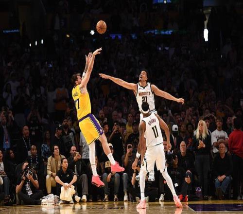 NBA常规赛继续进行,洛杉矶湖人队(42胜25负)继续连胜。里夫斯常规时间结束前打3分追平拖入加时赛,东契奇加时赛还有0.5秒时投中制胜球,随后他封盖哈达威可能的绝杀球,湖人队在主场以127-125险胜丹佛掘金队(41胜27负)。湖人队拿到5连胜,掘金队结束2连胜。