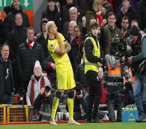 完成绝平进球的里沙利松摆出pose。