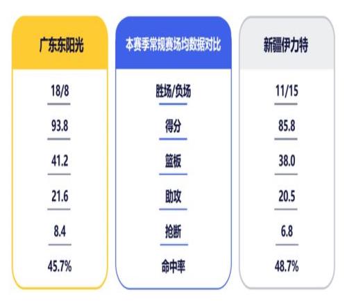 新疆队防守效率暂居联盟第五,球员身体对抗强硬。首回合,广东队进攻端遇阻,投篮命中率仅35.1%。即将迎来二番战,球队务必要加强团队配合,争取以多点火力撕穿对手防线,保持进攻侵略性和稳定性。而从近几场比赛看,外线手感回暖与否也将对广东队此战至关重要。