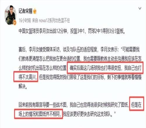 而中锋李月汝赛后那句直白坦言,宛如一声清脆的哨响,划破了表面平静,让所有关注者心头一震。