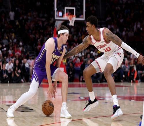 申京带着杜兰特一直上分,火箭始终保持微弱领先优势,里夫斯完全没手感,东契奇效率也在下滑,三节打完,火箭92-89湖人。决战第四节,里夫斯三分球追平,申京失误,小贾上篮又被老詹大帽按下!湖人反超6分火箭又发力,杜兰特联合小贾和申京,打出一波9-0!老詹跳投止血,最后5分钟,双方回到同一起跑线,东契奇和八村塁内外开花,阿门连续强攻,东契奇再中三分!火箭又是连续失误,八村塁和老詹轮流暴扣,东契奇三分球杀死比赛!最终湖人124-116击溃火箭,迎来7连胜!
