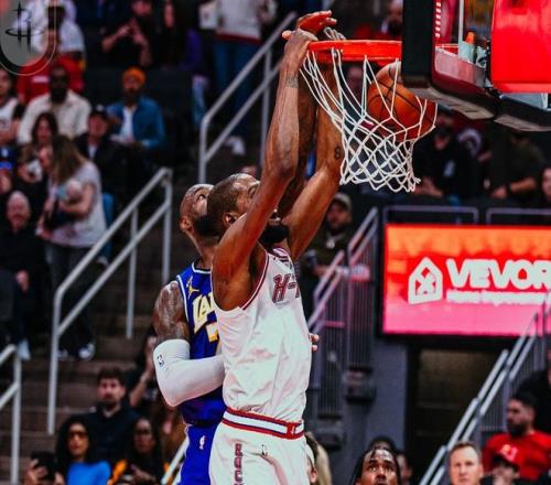 此后詹姆斯续上三分,火箭依靠伊森和阿门冲击篮下,艾顿继续扛着申京补扣,转身勾手也命中!中段申京和谢泼德内外开花,老詹抢断申京反击劈扣,杜兰特则毫无存在感,只剩下失误。后半段东契奇和八村塁下三分雨,杜兰特终于跳投得分,联合谢泼德追平。但节末东契奇外线连续发炮,联合肯纳德拉开分差,第一节湖人35-26领先火箭!进入第二节,阿门造杀伤,联合小贾不断迫近分差,老詹接到斯马特传球,右侧突进去起飞单臂砸扣,猛!中段拉拉维亚轰三分,老詹继续反击滑翔劈扣,今天彻底扣疯了!