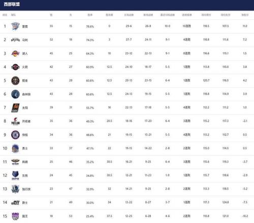 西部最新排名如下