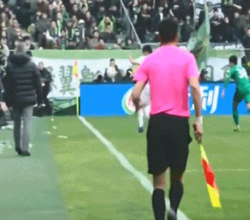 整体而言,这场比赛马宁的判罚没有多少瑕疵,唯一让上海申花产生质疑的就是上半场伤停补时阶段的一次判罚。第45分钟时,此时的申花0比1落后,年轻前锋刘诚宇带球到边线附近,一个扣球往里时,边裁举旗示意皮球已经出界,判给北京国安一个界外球。