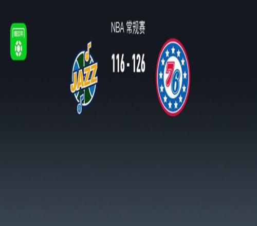 第四节爵士肯尼迪-钱德勒拿下6分,76人格雷姆斯拿下8分,最终爵士116-126不敌76人