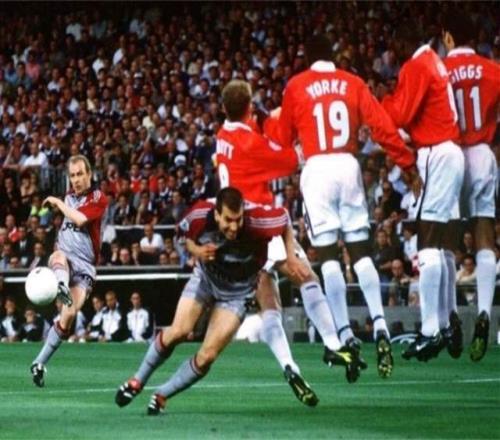 1998-99赛季,拜仁一路杀进欧冠决赛,对手是弗格森的曼联。比赛开场仅6分钟,巴斯勒就用一脚标志性的贴地任意球,洞穿了舒梅切尔的十指关!