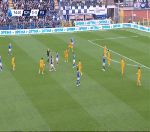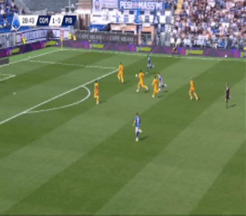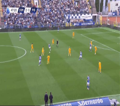 第29分钟,迪奥再次成为关键人物,他在反击中送出精准助攻,杜维卡斯冷静推射破门,科莫将比分扩大为2-0。两球领先后,科莫在场面上完全占据主动,比萨则在攻防两端都显得无所适从。