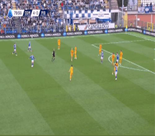 第75分钟,莫雷诺助攻尼科·帕斯推射再下一城,科莫4-0。