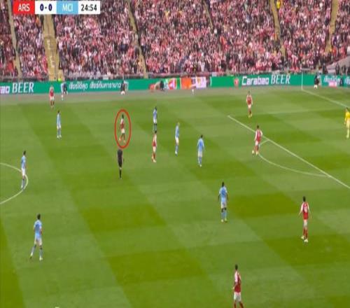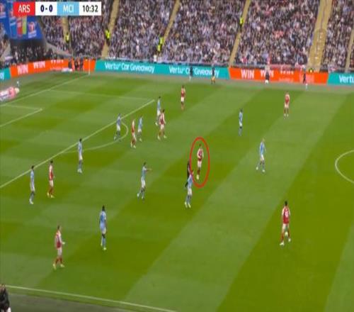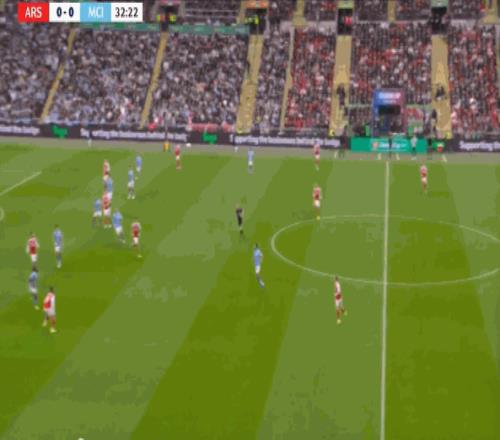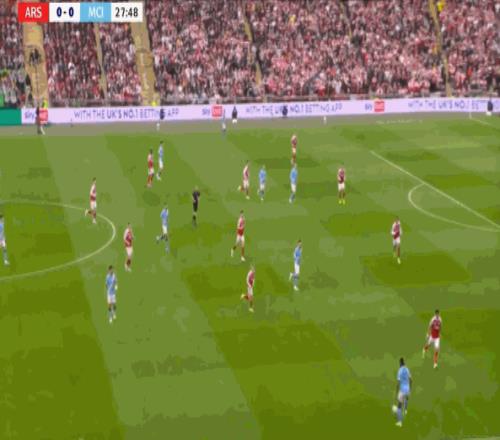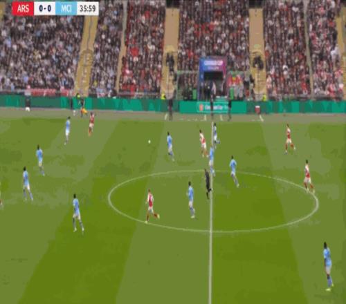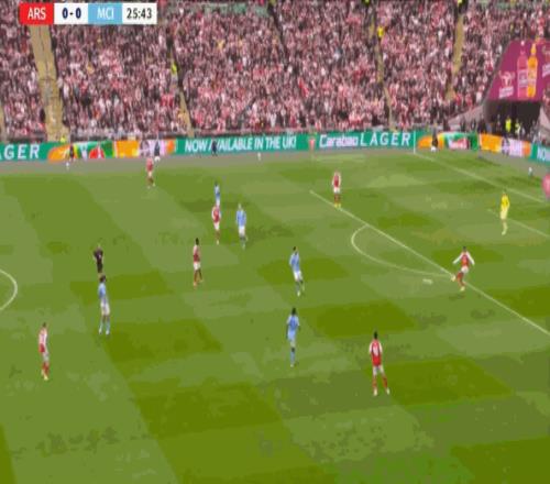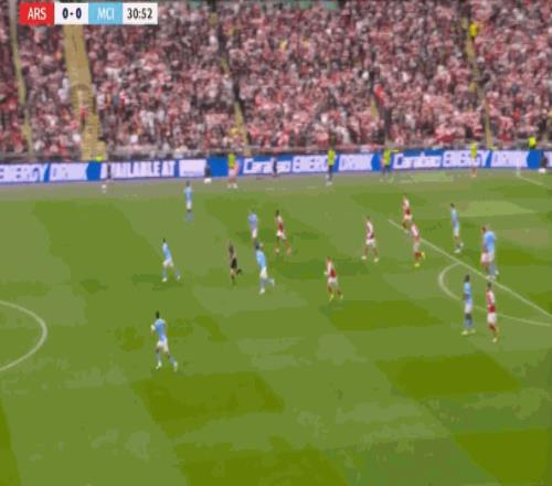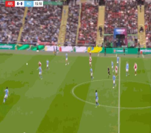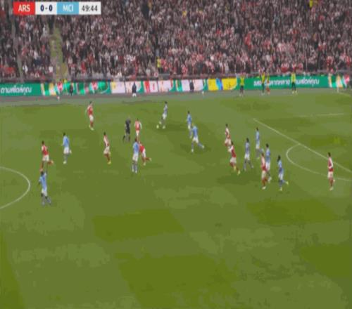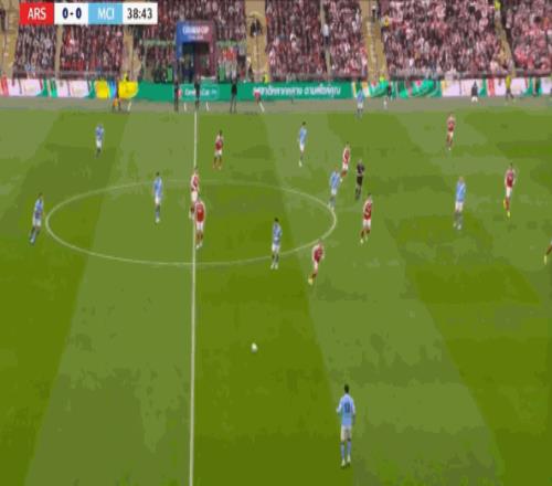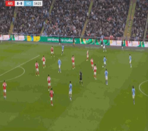 但在后场全高的情况下,阿森纳其实也很难能找到萨卡,甚至很难能穿越曼城的第一道逼抢线: