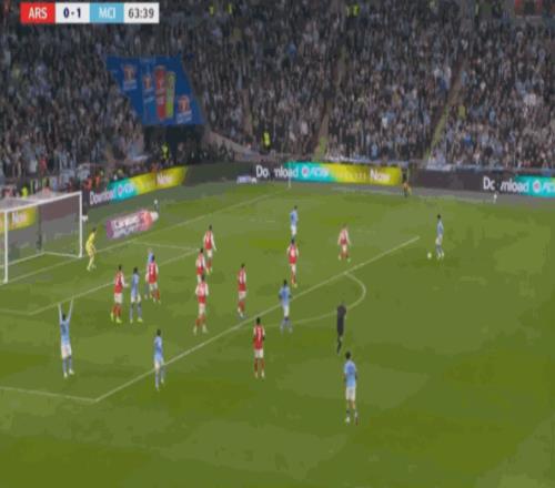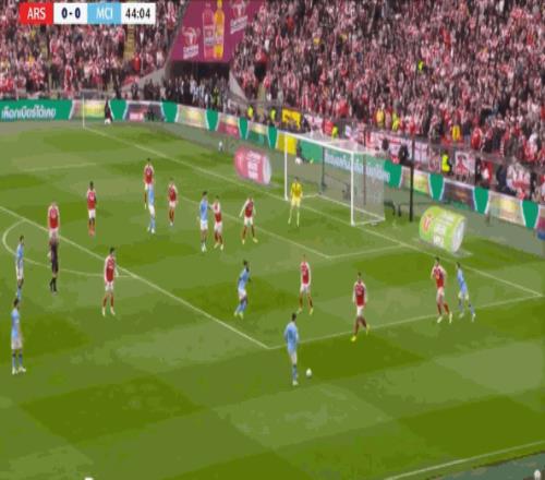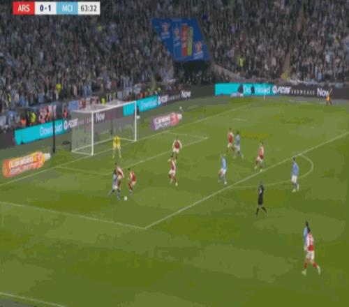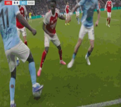 可惜的是,阿森纳全场只收获3次角球,逼迫曼城10次犯规,其中一次角球机会,还是萨卡单打制造的: