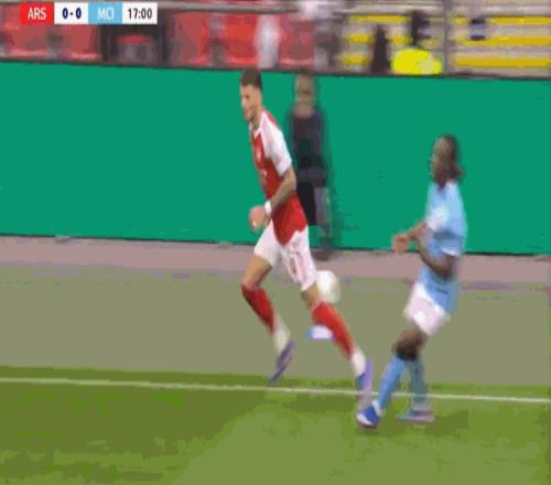 然后哲凯赖什背身拿球之后,加布里埃尔把球权还给曼城: