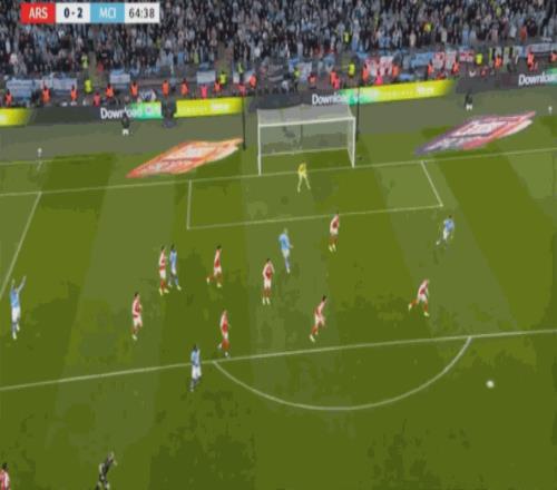因卡皮耶已经因为盯人而收到中间,所以加布里埃尔没有及时外扩,这让特罗萨德等于在一防二,在这种情况下,曼城门前多人争顶,奥赖利来到萨卡身前完成破门: