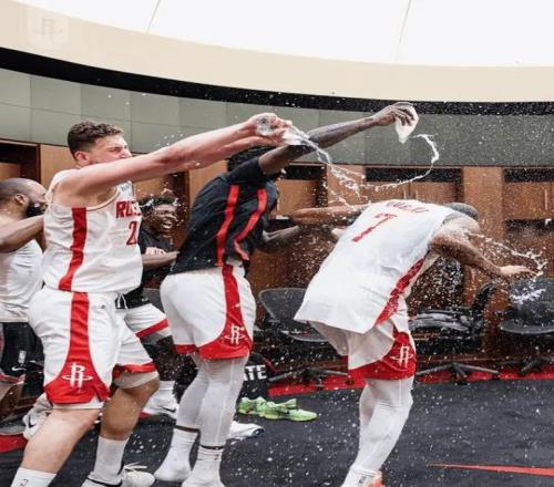 在以1分险胜热火的这场比赛结束之后,杜兰特接受完各种赛后采访回到主队更衣室。主帅乌度卡早就拿着这场比赛的用球在等着他,当杜兰特接过这个意义非凡的篮球时,申京、谢泼德和一众年轻的队友已经迫不及待地把水瓶中的水全部洒向杜兰特。