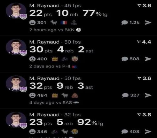 凭借连续两场30+的表现,雷诺成为了国王队史上第四位做到这一点的新秀,也是自1993年以来首位达成此成就的国王新秀。