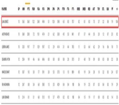 全队场均得分第二的里夫斯只有20.8分,詹姆斯场均19.7分,全队只有三人上双,东契奇一人扛的产量太恐怖了。