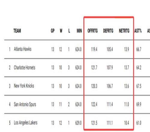 湖人本赛季赢球主要是依靠进攻,这13场比赛湖人进攻效率121.5联盟第四,防守效率111.1联盟第八(进步已经很明显),净效率值10.4联盟第五,这就是东契奇带来的变化。