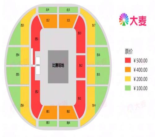 本场比赛为B类赛事,票价共分为500元、400元、200元、100元4档,具体座位分区可查看下方票区图(主队近东1区,客队靠东3区),请各位球迷按需购买。
