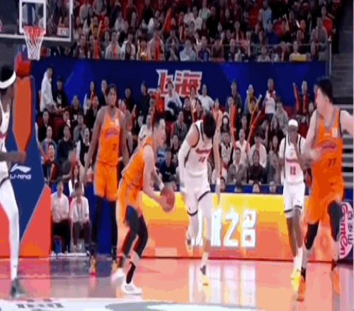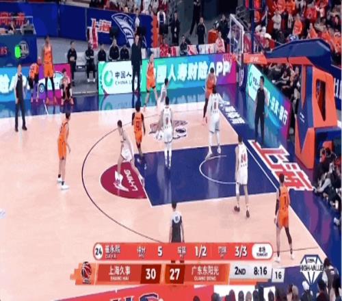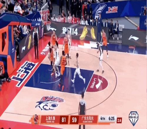 刘铮、李弘权相继命中三分球,上海男篮将分差扩大到20分。