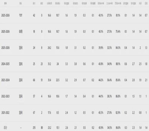 本赛季,托马斯为篮网出战24场首发8次,场均上阵24.3分钟贡献15.6分1.8板3.1助,两项命中率39.9%和32.5%;为雄鹿出战18场全部替补,场均上阵16.6分钟得到10.7分1.6板1.9助,两项命中率43.1%和27.5%。