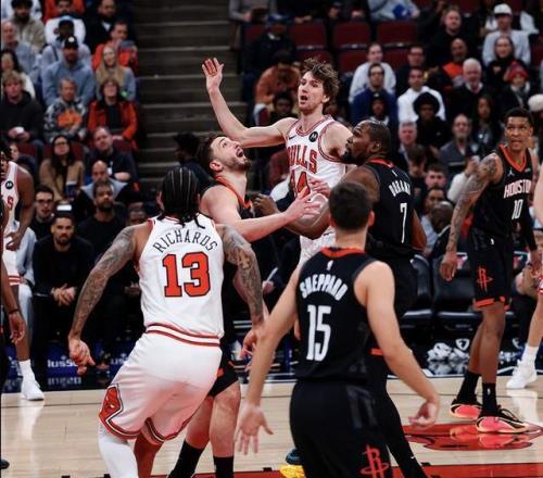 次节比赛,公牛上来状态依然出色,随后回家慢慢进入节奏,申京内线连续拿分,可公牛外线再次命中,申京继续拿分,一度追至14分。米勒三分命中稳住局势,塞克斯顿三分再进,分差又被拉开,杜兰特三分回敬一球,迪林厄姆三分也进,火箭完全无法限制对手的进攻。阿门随后连续拿分,公牛最后未能继续得分,半场65-48领先火箭。