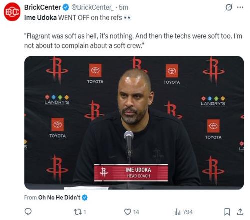 随后乌度卡还谈到这场比赛的吹罚尺度:阿门的恶意犯规吃的很软,技术犯规也吹得很软,我不想再说这一群软蛋裁判了,就这样吧。(杜兰特最后时刻一个摆脱,没有太严重的动作裁判给了无球进攻犯规,这个吹罚直接让比赛失去悬念,乌度卡也因此失去理智炮轰裁判吃了第二个T)