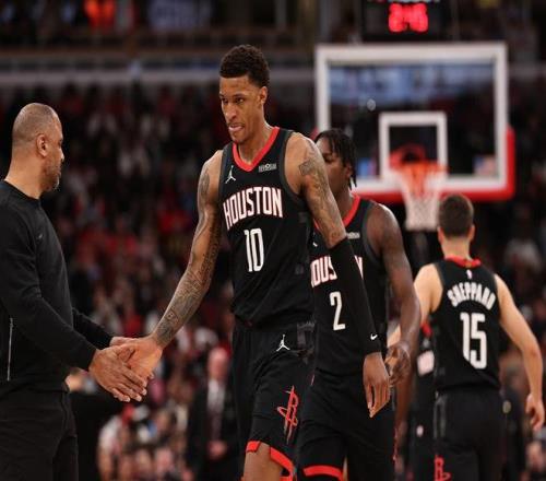 火箭:杜兰特40分7板5助、申京33分13板10助2断2帽、阿门23分3板1助2断2帽、谢泼德13分5板6助2断2帽、小贾6分5板;